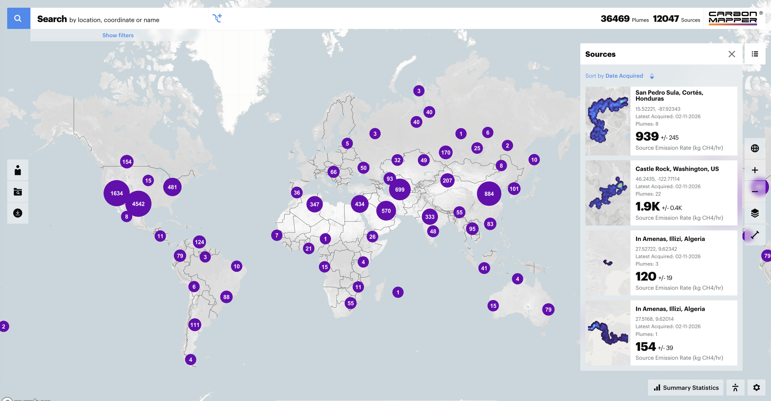 Click below to explore Carbon Mapper’s global emissions map and search for your city, state, or province.